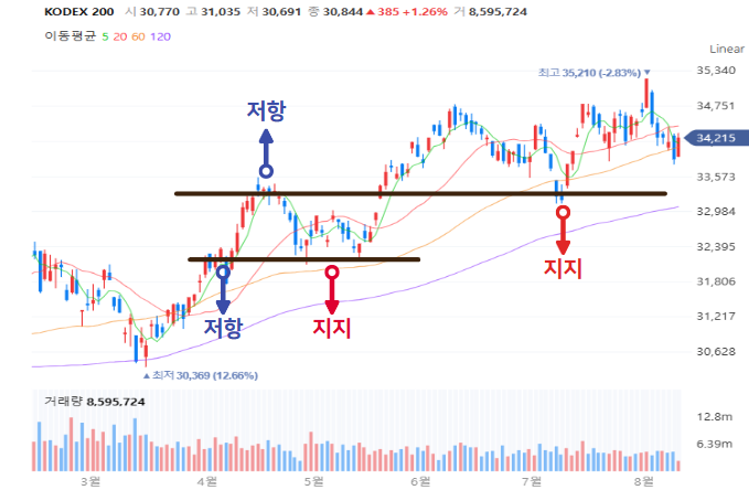 ✅ 지지와 저항 - 떨어지지 않게 받치는 힘(지지)과 올라가지 못하게 누르는 힘 (저항)