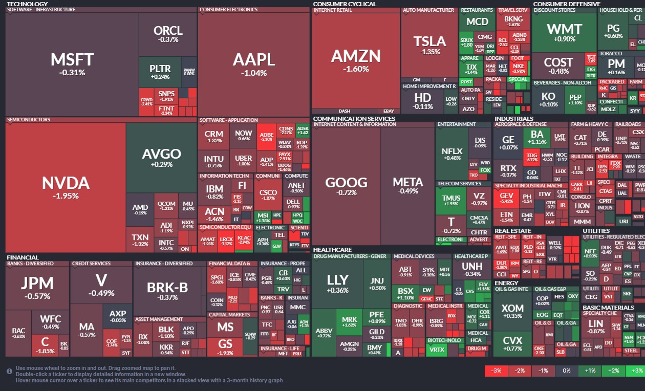 → 의료·에너지 같은 일부 방어주를 제외하고 대부분 하락했습니다. 제조업 지표는 부진했지만, 새 주문이 늘어난 점은 시장에 작은 위안이 됐습니다.