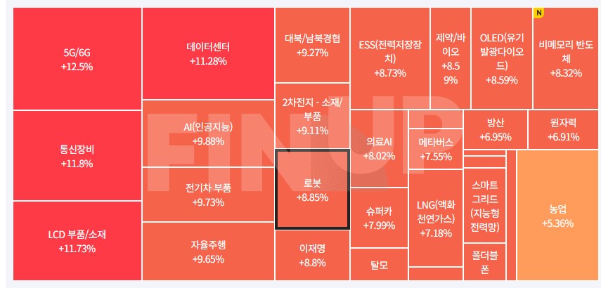 → 외국인이 삼성전자, SK하이닉스 같은 대형 반도체 주식을 사들이며 지수를 끌어올렸습니다. 로봇·조선 같은 테마주도 힘을 보탰습니다.