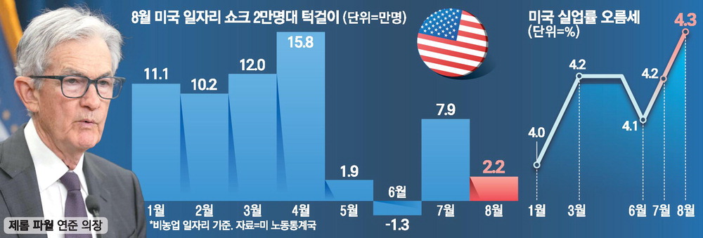 ๋ฏธ๊ตญ 8์ ๊ณ ์ฉ์ด ๊ธฐ๋๋ฅผ ํฌ๊ฒ ๋ฐ๋๋ฉด์ ์์ฅ์ 9์ 0.25% ์ธํ ๊ฐ๋ฅ์ฑ ์ฝ 90%, 0.5% โ๋น
