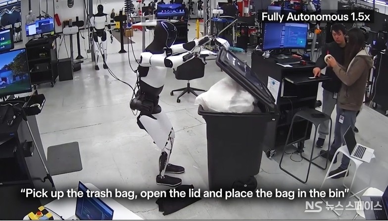 일론 머스크가 엑스에 올린 테슬라 옵티머스 로봇이 쓰레기를 버리는 영상/ 엑스 |