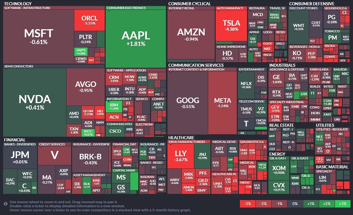 → 대형 기술주 혼조, 오라클 약세 지속으로 심리 위축.