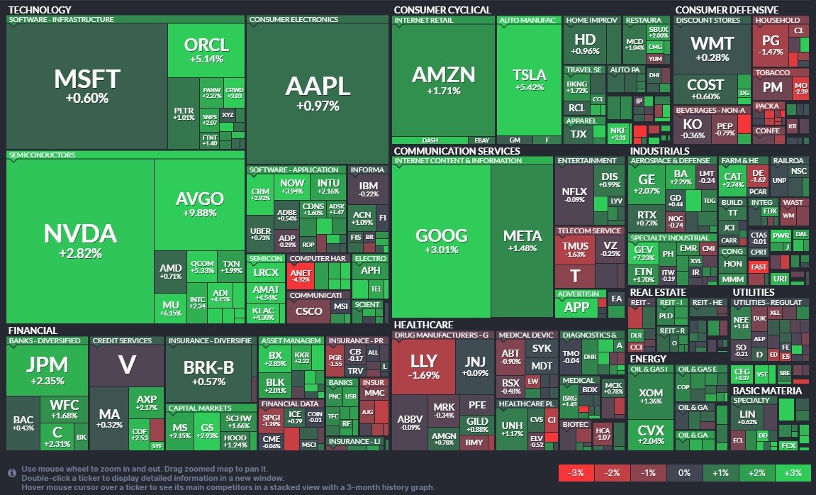 → OpenAI–브로드컴의 대형 협약 소식이 나오며 기술주가 크게 뛰었습니다.