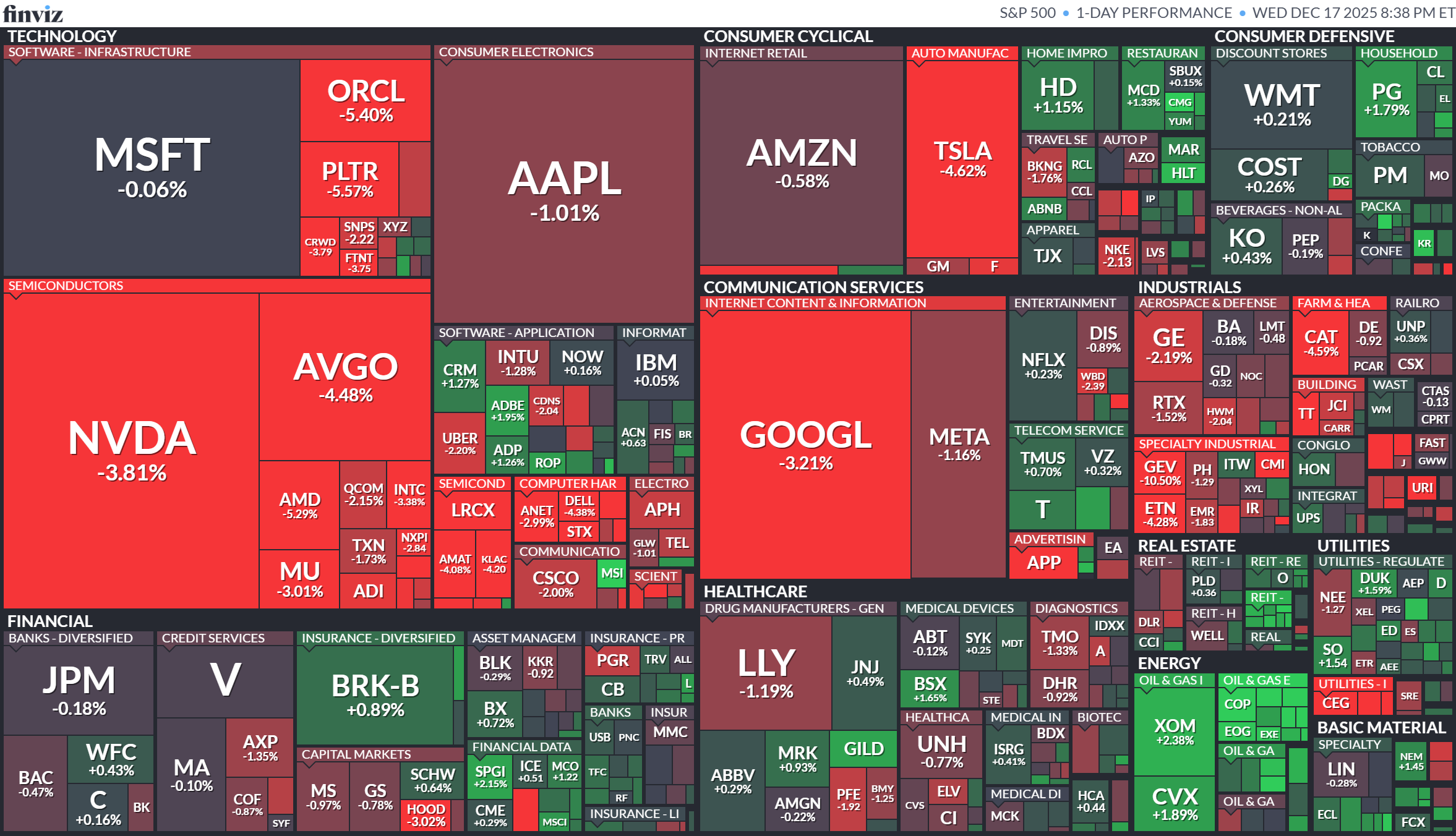 โ ์ค๋ผํด๋ฐ AI ํฌ์ ๋ถํ์ค์ฑ์ผ๋ก ๊ธฐ์ ์ฃผ ์ ๋ฐ์ด ๊ธ๋ฝ.