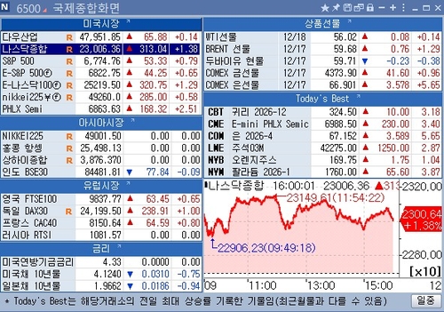 ๐บ๐ธ ๋์ค๋ฅ 23,006.36 โฒ313.04 (+1.38%) โ ๋ง์ดํฌ๋ก ์ค์ ์ํ๋ผ์ด์ฆ๋ก AIยท๋ฐ๋์ฒด ์ฃผ๋ ๊ฐํ ๋ฐ๋ฑ