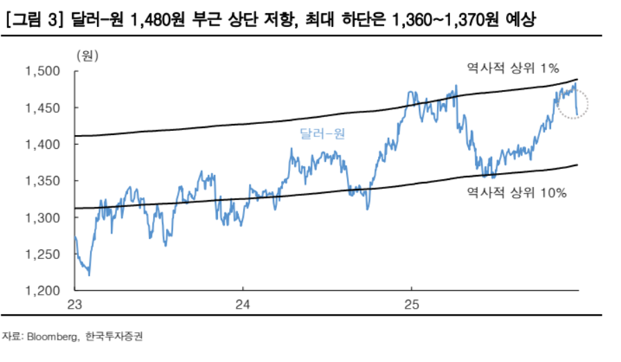 ๊ณผ ๊ตญ๋ฏผ์ฐ๊ธ ํํค์ง ์ฌ๊ฐ๊ฐ ๋ง๋ฌผ๋ฆฌ๋ฉฐ ๋ฌ๋ฌ-์ ํ์จ์ 1,480์๋์์ 1,440์์ ๊น์ง ๋น ๋ฅด๊ฒ ํ๋ฝํ์ต๋๋ค.