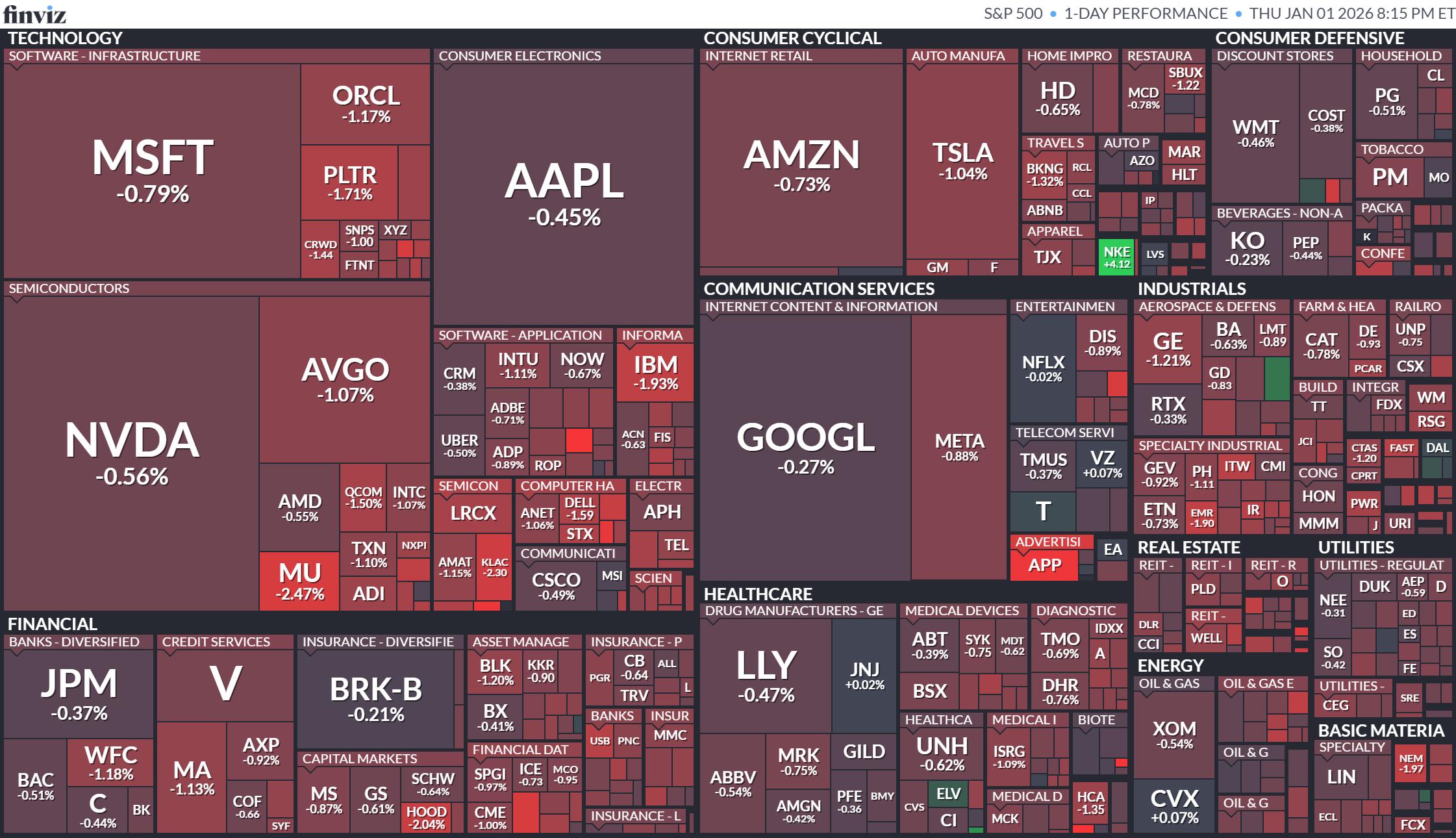 12์ 31์ผ Finviz S&P500 Map |