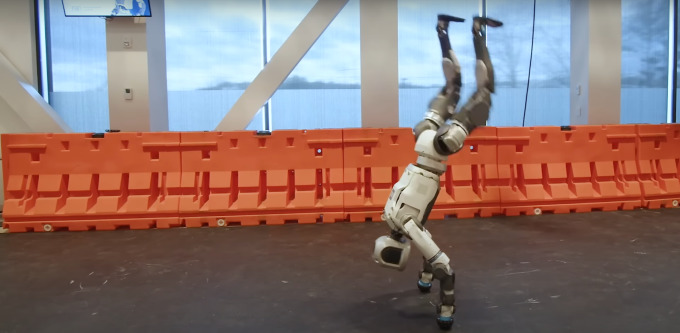 ํ๋์ฐจ๊ทธ๋ฃน ๋ก๋ด ์ ๋ฌธ ๊ณ์ด์ฌ ๋ณด์คํด๋ค์ด๋๋ฏน์ค๋ 19์ผ(ํ์ง์๊ฐ) ํด๋จธ๋ก์ด๋ ๋ก๋ด ์ํ๋ผ์ค(Atlas)๊ฐ ์ธ๊ณต์ง๋ฅ(AI) ๊ฐํํ์ต์ ํตํด ์๋กญ๊ฒ ํฐ๋ํ ๋์์ ์์ฐํ๋ ์์์ ๊ณต๊ฐํ๋ค. (์ฌ์ง=ํ๋์ฐจ๊ทธ๋ฃน) |
